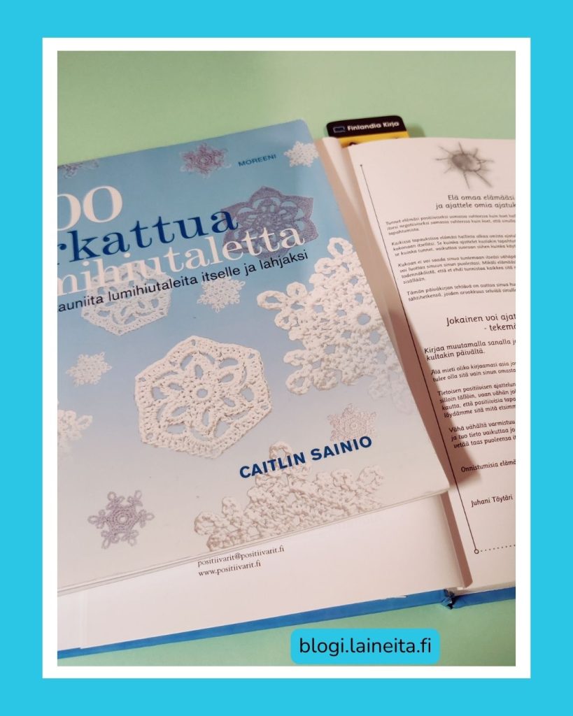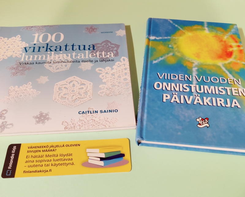 Minulla on ollut joskus kirjastosta lainassa tämä 100 lumihiutaletta -kirja ja tein silloin n. 15 erilaista lumihiutaletta. On ollut tarkoitus jatkaa ja tehdä nuo kaikki, kunhan saisin hankittua kirjan itselleni. Nyt löysin sen Finlandia Kirjan verkkokaupasta käytettynä ja edullisesti! 🙂 Lähes uudenveroisessa kunnossa.